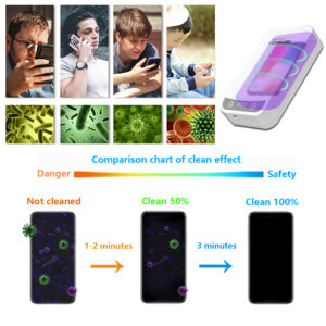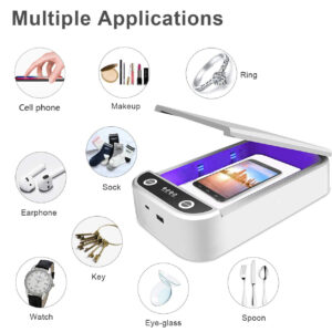 2. Comes with Universal USB Cables, DC5V/1A is provided to the device, which can be power bank, USB plug, laptop etc. You can sanitize your cell phone with its case whether at work home traveling or car.